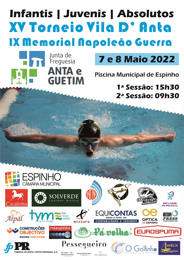 Nos próximo fim-de-semana, dias 7 e 8 de Maio 2022, a Secção de Natação do Sporting Clube de Espinho irá estar presente no XV Torneio Vila D'Anta | VIII Memorial Napoleão Guerra, organizada pela ANCNP - Associação de Natação de Aveiro e pela própria secção de natação do SCE.