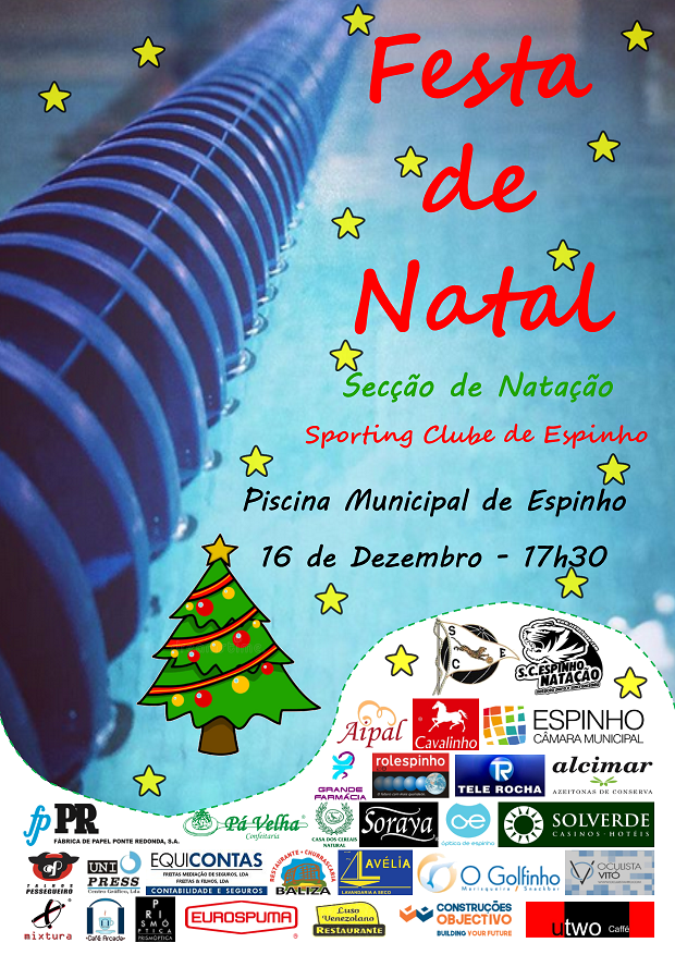 Decorreu no passado sábado, dia 16 de dezembro, a Festa de Natal da Natação do Sporting Clube de Espinho com o habitual minitorneio de Natação Pura e Adaptada e com a exibição das nadadoras de Natação Sincronizada, seguindo-se de um Jantar Convívio entre todos os nadadores, treinadores e dirigentes. Estiveram presentes mais de 100 nadadores.